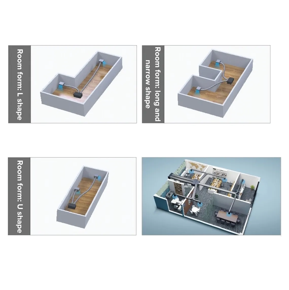 Блок може з'єднувати кілька кімнат через повітропровід, і може бути гнучко налаштований відповідно до різних типів будинків, одного кондиціонера, спільного користування кількома кімнатами.