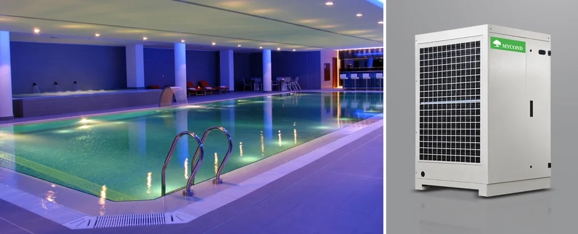 Літо: Басейн використовується, повітря сушиться, рекуперація тепла для нагріву води басейна